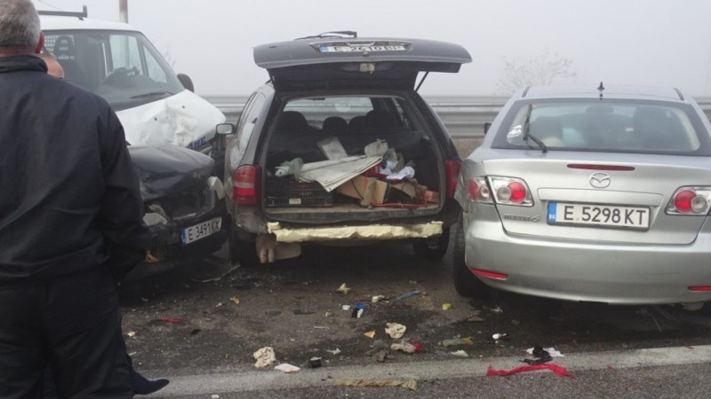 Засега причина за катастрофата е спрял поради липса на видимост лек автомобил, в който се удрят следващите автомобили.