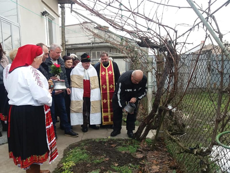 Отец Деан отслужи тържествен водосвет за здраве и берекет. Ритуалното зарязване бе в дома на Иванка Петкова. Царят на лозята – Стефан Николов – отряза първата пръчка. Гостите поляха лозите със светена вода и вино, а Отчето ги благослови.