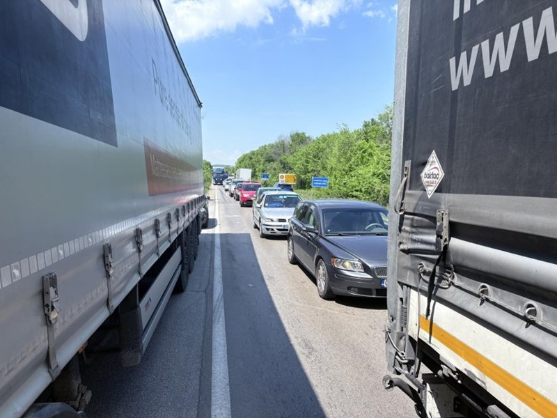 Движението по международния път не е спряно напълно, но се регулира от екипи на „Пътна полиция".