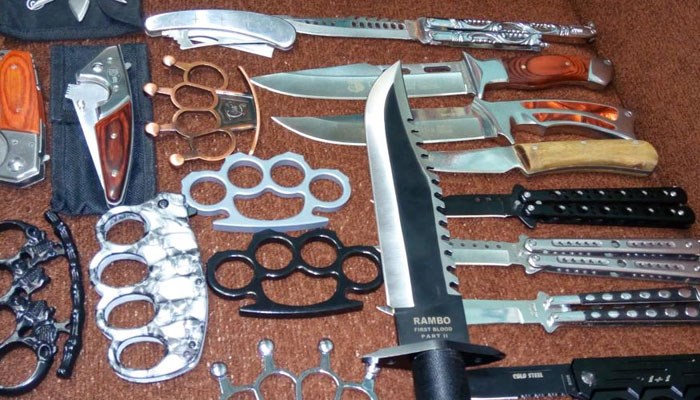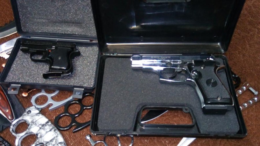 По време на проверката криминалисти намерили у единия 17-годишен шуменец два незаконно притежавани газови пистолета и богат арсенал от хладни оръжия, който включвал 12 ножа с различна големина, седем бокса, метален елемент с множество остри върхове, известен като шурикан.