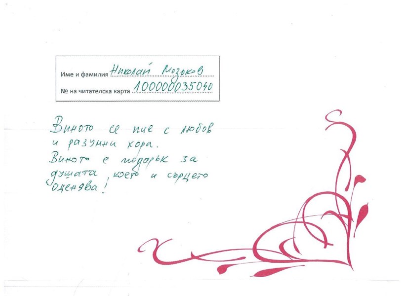 Затова решихме не един, а двама участници да получат бутилка вино, съобщиха от библиотеката! И това са Виктория Тодорова и Живодар Душков.