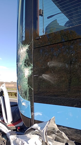 "При инцидента водачът на буса е пострадал значително, а щетите на буса са видими от снимката. До колкото разбрахме, животът му е вън от опасност, но му предстои продължително възстановяване", се казва в писмото.