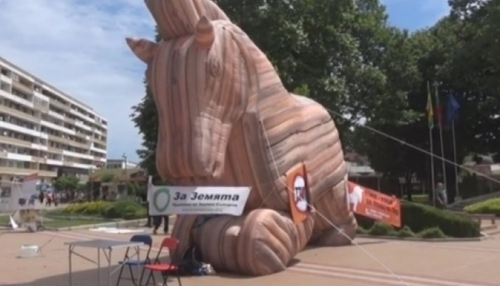 Троянски кон като символ на протестите срещу Трансатлантическото търговско и инвестиционно партньорство /ТТИП/ между Европейския съюз и САЩ издигнаха днес в центъра на Добрич еколози.