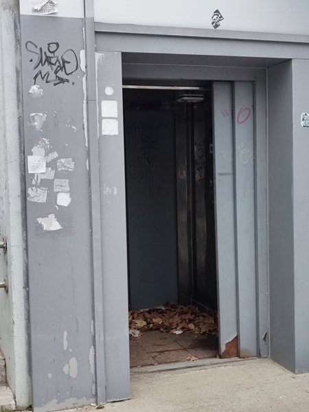 "От няколко месеца така изглежда асансьора на кръговото, от страната на зала Арена. Обръщам внимание на тези, който отговарят за поддръжката и ремонта на това съоръжение, защото може да не са го забелязали. Все пак трябва да се отремонтира, за да могат да го ползват хора със затруднения в придвижването", пише гражданката във Facebook.
