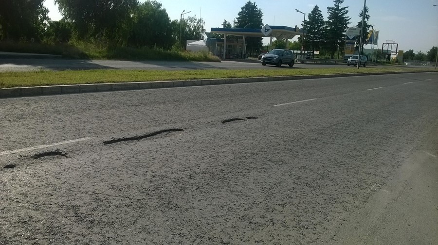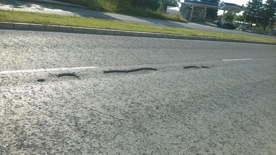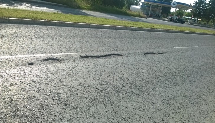 От повече от половин година се отвориха тези дупки по международен път E70 (от Варна), малко след входа на Русе, срещу бензиностанция Петрол.