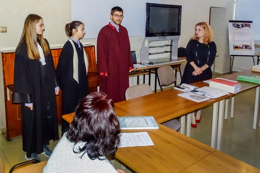 В началото съдия Чокоева покани трима доброволци да облекат съдийска, прокурорска и адвокатска тога и да почувстват отговорността на юридическата професия. „Адвокатът“ Моника сподели желанието си да учи право и да бъде адвокат. Съдията обясни накратко ролята и правомощията на магистратите и адвокатите в съдебния процес, разликата във видовете съдебни дела, след което започна дискусия в откровен и непринуден разговор.