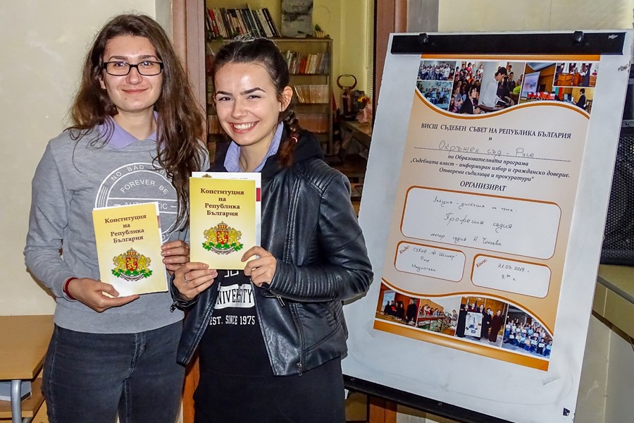 В края на срещата всички ученици получиха Конституция на Република България, брошура, представяща органите на съдебната власт и удостоверение за участието си в Образователната програма. Всички тези печатни материали са отпечатани и предоставени от Висшия съдебен съвет за целите на инициативата.