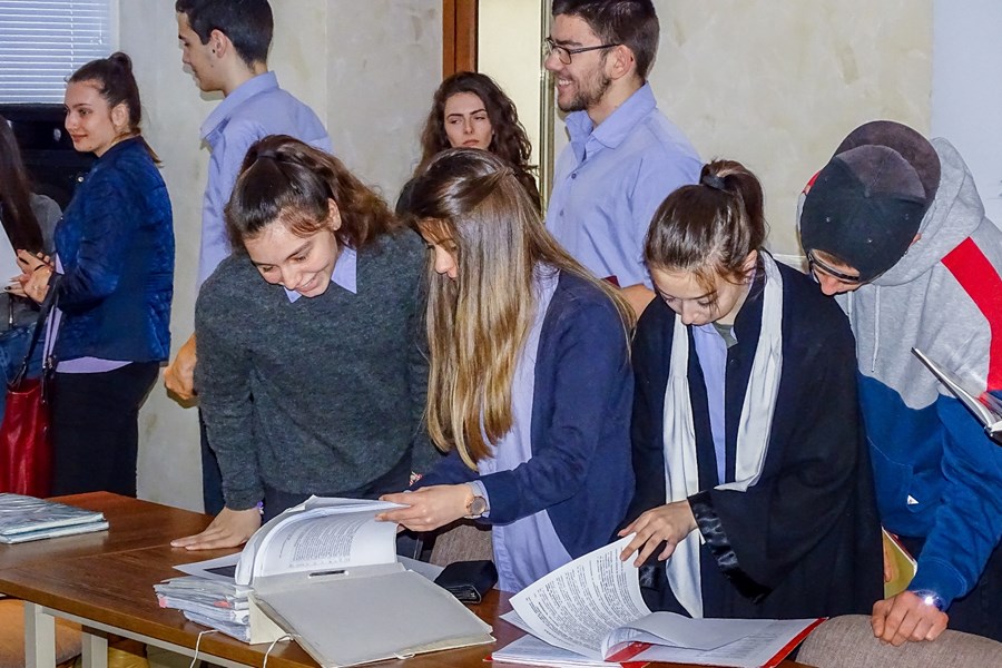 Съдия Чокоева беше донесла едно гражданско и едно наказателно дело и даде възможност на учениците да ги разгледат, а те на свой ред изразиха удивлението си от огромния труд на магистратите по събиране на всички тези томове с доказателства.