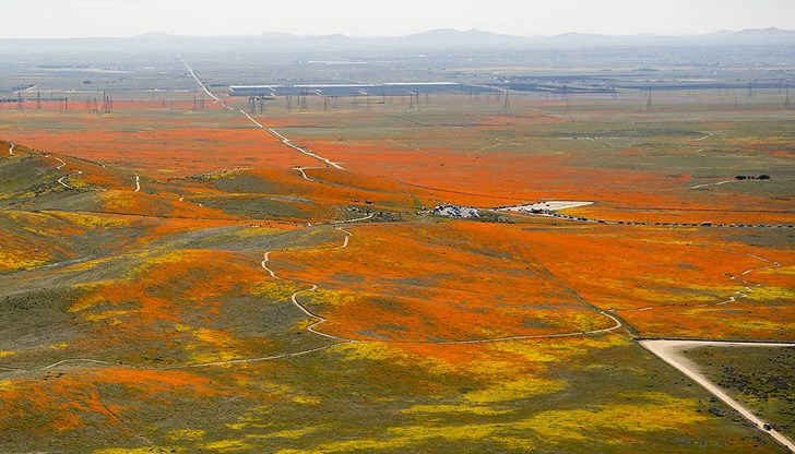 Обилните валежи, паднали в щата Калифорния тази година, предизвикаха исторически суперцъфтеж на оранжевите макове