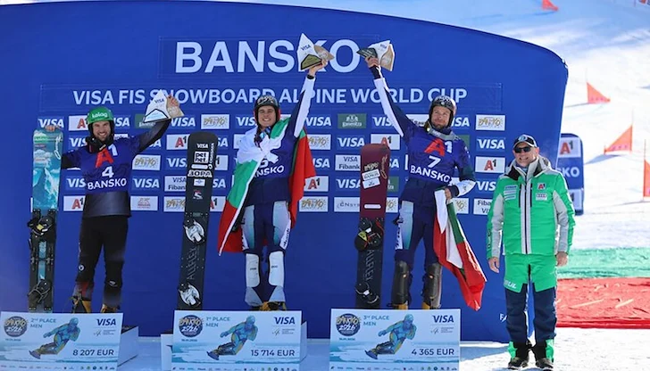 България записа безпрецедентен успех в зимните спортове днес, след като двама родни състезатели стъпиха едновременно на почетната стълбичка в старт от Световната купа. Тервел Замфиров завоюва първото място, а ветеранът Радослав Янков финишира трети в паралелния гигантски слалом в Банско. Триумфът бе мигновено определен като "феноменален" от председателя на Българската федерация по ски (БФСки) Цеко Минев, който не пропусна да акцентира върху ролята на федерацията за тези резултати.