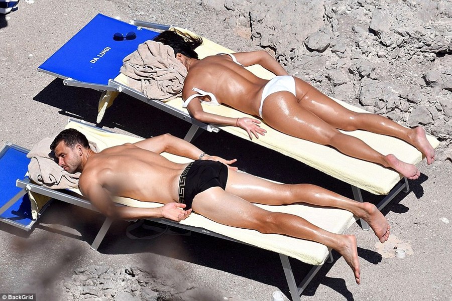 Докато Григор видимо искаше да изравни тена си в областта на чорапите и ръцете, 39-годишната певица не спираше да го прегръща и докосва. В един момент двамата се позанимаваха с общото си хоби - йогата и демонстрираха гъвкавост. Жегата ги накара да се потопят в морето, където Гришо и Никол се прегърнаха и целунаха.