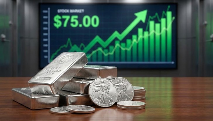 Цената на среброто достигна невиждани досега нива, преминавайки психологическата граница от 75 долара за унция по време на търговията в петък. Спот цената на белия метал се повиши с близо 5% до рекордните 75,14 долара за унция, отбелязвайки пета поредна сесия на растеж.