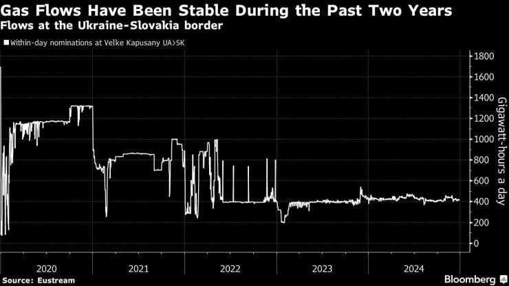 През последните две години газовите потоци на украинско-словашката граница са били стабилни