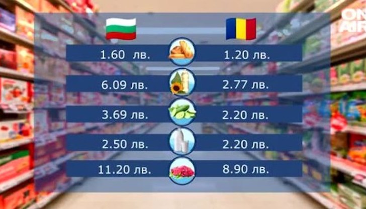 Дори и цените у нас да са сходни с тези в Румъния, не така стои въпросът със заплатите. Оказва се, че разликата в минималната работна заплата е 150 евро. Количеството продукти, което може да си позволи едни българин, е по-малко в сравнение с румънец, който получава минимална заплата, отбелязва Bulgaria On Air.