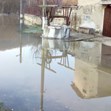 Дигата, която е компрометирана от години, вече е скъсана на много места и водата е стигнала до къщите край реката.