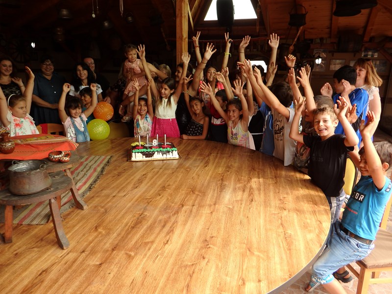Събрани около празничната торта, децата с нетърпение очакваха да духнат свещичката за осмата годишнина на втория си дом. Независимо че малчуганите предпочитат съвременните музикални ритми, в края на празника заедно с гостите се хванаха на кръшно българско хоро.