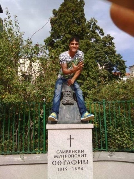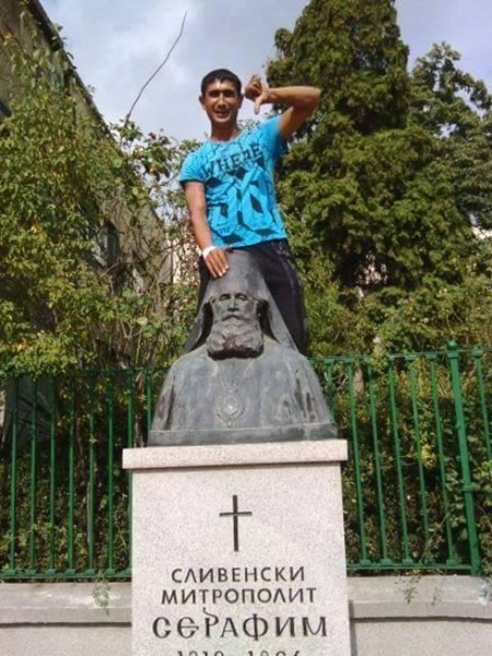 Пореден случай на гавра с паметник взриви мрежата. Фейсбук буквално завря, след като се появиха снимки на млади мъже, кацнали върху монумента на сливенския митрополит Серафим.