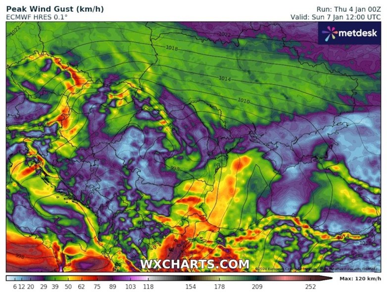 Покрай циклона през почивните дни (събота следобед, през нощта и в неделя) ще духат силни южни ветрове с фьонови пориви по северните планински склонове. Очакваната скорост е до 80-90 километра в час.