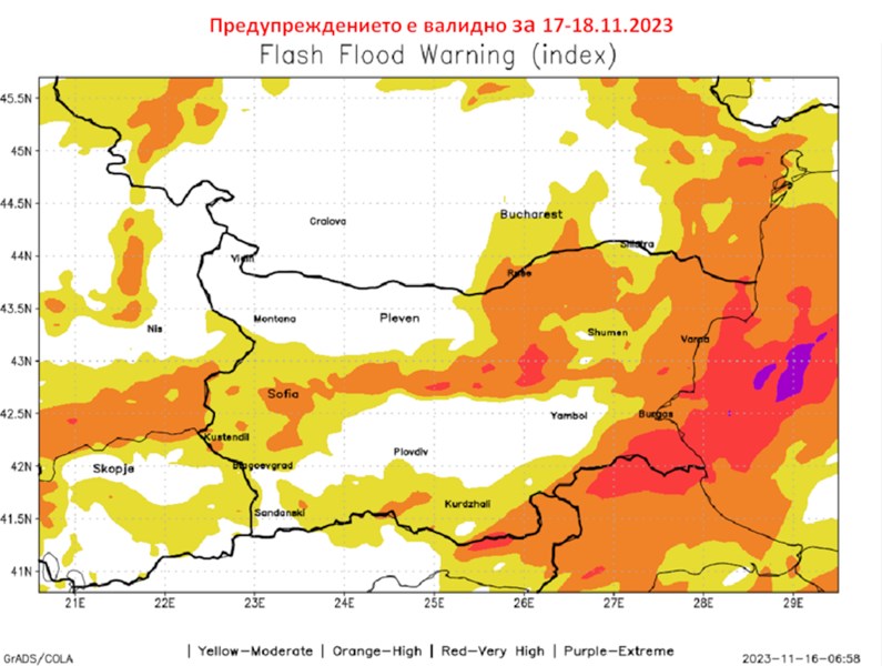 Поради очакваните значителни валежи, алгоритъмът на регионалния модел SPM показва къде вероятността от внезапни наводнения е най-висока: