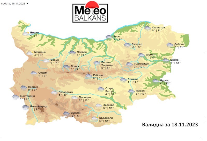 Около полунощ в Западния и Централен Предбалкан и по високите полета от Западна България ще премине в сняг. Ще се образува тънка снежна покривка, която ще е силно изразена от надморската височина.