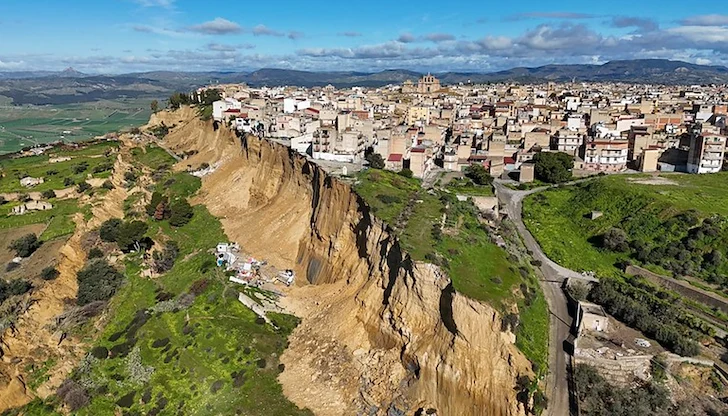 Сицилианският град Нишеми е на ръба на физическото оцеляване, след като гигантско свлачище с фронт от 4 километра буквално разцепи земята и остави десетки домове да висят над 50-метрова пропаст. Докато премиерът Джорджа Мелони обикаляше с хеликоптер засегнатите райони днес, прокуратурата в съседния град Джела започна наказателно производство за "непредумишлено причиняване на бедствие", съобщи италианската агенция ANSA.