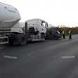 При неясни все още обстоятелства цистерна на „Холсим“ е размазала лек автомобил „Фолсваген Голф“. В немската кола са пътували две жени и дете, които са буквално размазани с множество травми. Две линейки, пожарна, екип на гражданска защита и полицаи от Пътна полиция са участвали в спасяването на пострадалите хора от возилото с врачанска регистрация. В Спешния център във Враца вече се борят за живота на жените и детето.