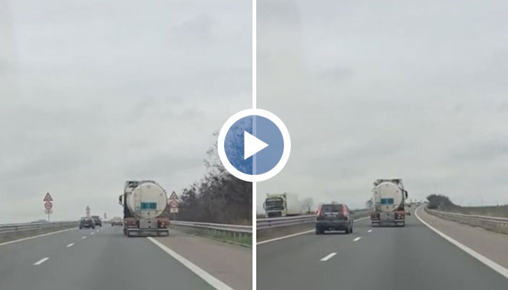 Шофьор на цистерна изплаши движещите се по АМ „Тракия“ в посока София. Сигналът е изпратен до bTV.