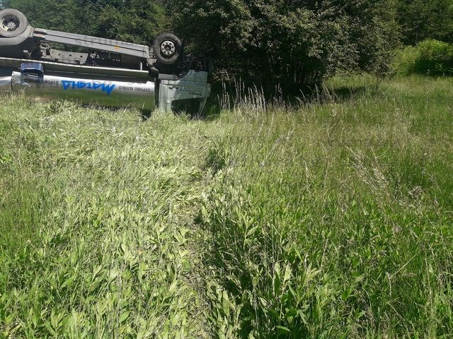 Поради техническа неизправност цистерната, спускаща се през прохода Предел в посока Разлог, излязла от пътя и се обърнала с гумите нагоре.