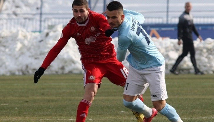 Дунав и ЦСКА - София играят при 0:1 в мач от 23-ия кръг на Първа лига, който се провежда на тежък терен в Русе.