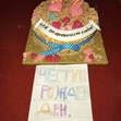 Тортата му е на сърчица - розови и цикламени, с едно червено отпред.