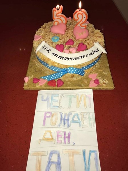 Връчи му я точно в 0 часа съпругата Десислава, понеже дъщерите в полунощ вече спяха, пише 24 часа.