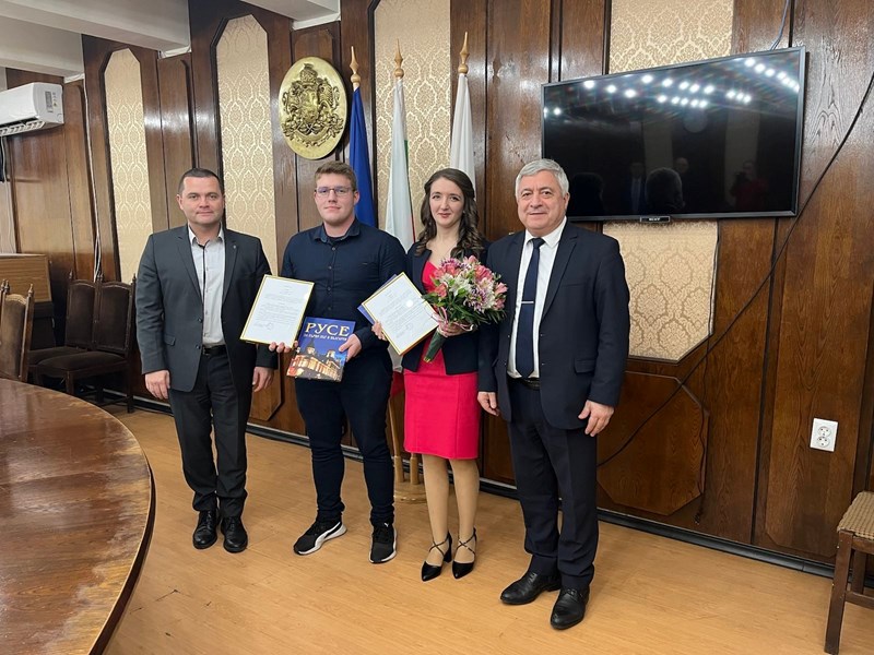 Цветелина и Серкан бяха наградени от кмета Пенчо Милков в присъствието на председателя на Общински съвет-Русе акад. Христо Белоев, дтн и заместник-кметовете на община Русе Енчо Енчев и Димитър Недев.