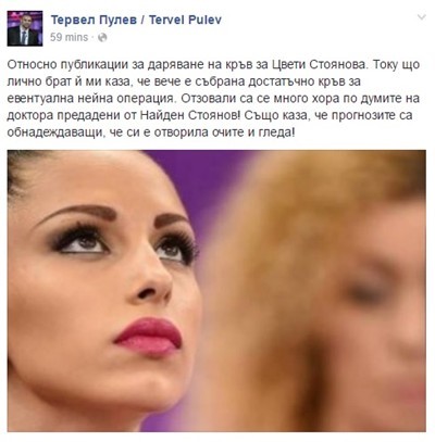 Тежко пострадалата гимнастичка от националния отбор на България по художествена гимнастика Цветелина Стоянова е отворила очите си.