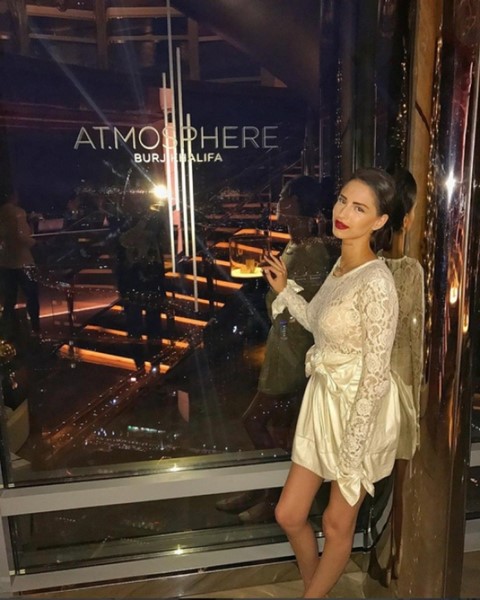 На кадъра Цвети позира в небостъргача Бурж Халифа, който е една от местните забележителности.