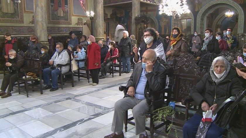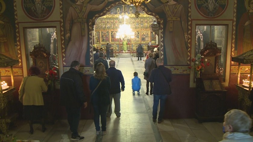 Тази година мерките за безопасност се спазваха, като хората, които чакаха да влязат в църквата, спазваха дистанция, бяха с маски, а част от местата за запалване на свещи бяха изнесени извън храма, предава БНТ.