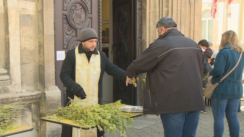 Хиляди миряни се редиха през целия ден с цветя в ръце, за да влязат в катедралния храм “Света Троица” в Русе, за да се помолят пред иконите, да получат причастие и върбови клонки от свещениците.