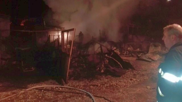 Сигналът за огнената стихия е получен малко преди 16:00 ч. в понеделник, като се съобщавало за пожар в гараж. За броени минути, огънят обхванал и съседните постройки, пише Дарик.