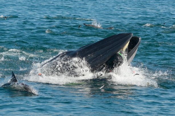 Преди инцидента Шимпф снимал миграцията на сардините, която освен китове привлича пингвини, тюлени, делфини, акули и морски птици, търсещи лесна плячка. Изведнъж се появил ивичест брайдов кит, отворил устата си и го погълнал с главата напред.