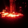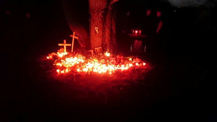 Два бели кръста – за Мария и неродената й дъщеря сочат мястото на убийството в гората.Съпричастни към трагедията, хората оставят свещи, играчки и цветя.