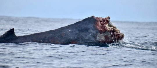 Малкото китче изгубило опашката си, след като се било оплело в рибарски мрежи. Според експертите, те толкова силно се били увили около кита, че нарушили циркулацията на кръв, предава Блиц. Най-вероятно, на животното не му остава още много живот, защото опашката му е необходима, за да може да плува на дълги разстояния и да се гмурка надълбоко.