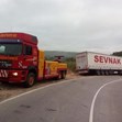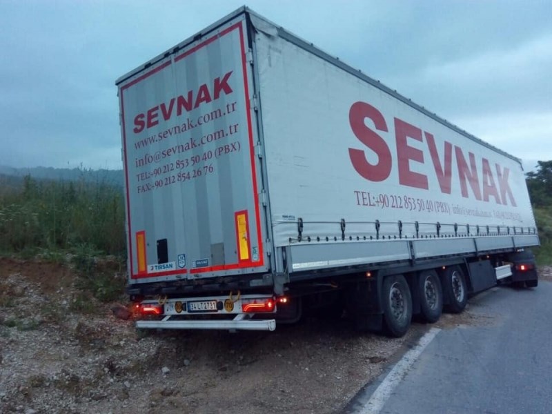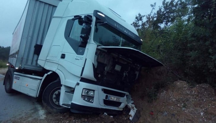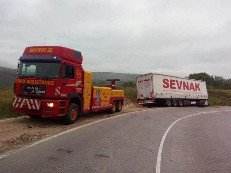 Инцидентът е станал рано тази сутрин в района на село Бела. Влекач „Ивеко“ с прикачено ремарке с турска регистрация е излетял от пътя. При десен завой тежката машина е влязла в насрещното и се е спряла в храсталаци в ляво от шосето.