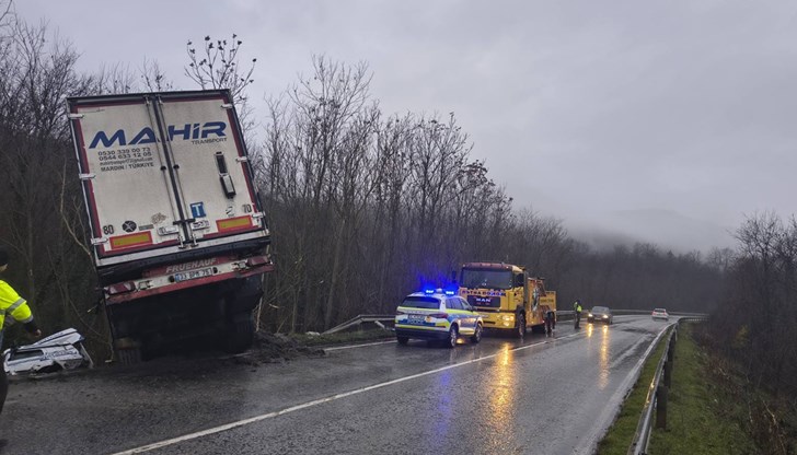Камионът е излязъл от пътното платно и се намира в крайпътната канавка, съобщи NOVA.