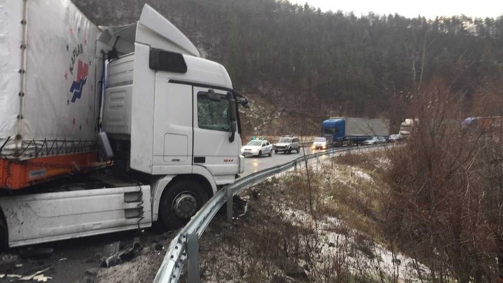 Шофьорът на турски ТИР е загубил управлението на ляв завой и навлязъл в насрещното платно. В него се ударил ТИР с ловешка регистрация. Тежко е пострадал шофьорът на българския камион. Той е откаран в старозагорската болница с опасност за живота.