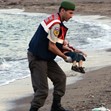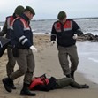 Телевизионни кадри показват телата на загиналите, облечени в спасителни жилетки, които лежат на плажната ивица.