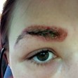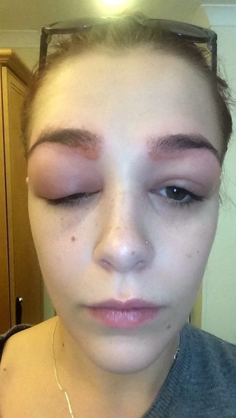 Тази снимка е направена в деня след процедурата. Според Поли сутринта тя трудно отворила очите си. Оказва се, че момичето прави алергична реакция от боята, с която боядисват веждите й в козметичния салон.
