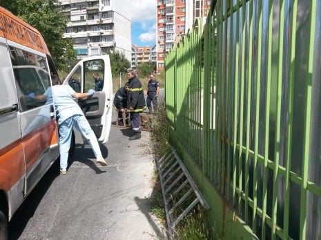 Така се наложило да дойдат линейка, полиция и служители на Гражданска защита, които свалили мъжа от оградата, оказали му първа помощ и го прибрали.