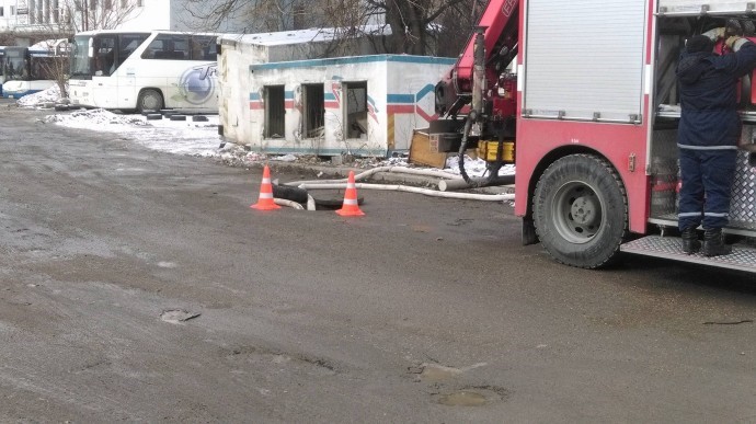 Специалисти, облечени в неопрени, се готвят да влизат в шахтата, откъдето пожарникари изпомпаха вода.