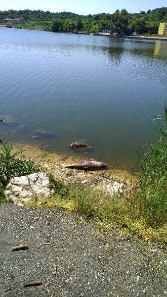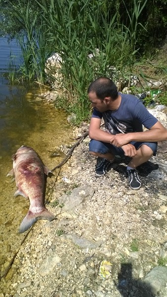Вижте каква риба видях вчера на брега на езерото в село Николово ТЕКЕТО мисля че е толстолоб убит с харпун понеже има рана.