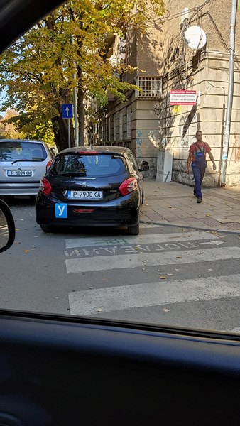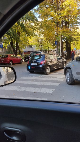 Учебна кола на Гимназията по транспорт в Русе паркира на пешеходна пътека