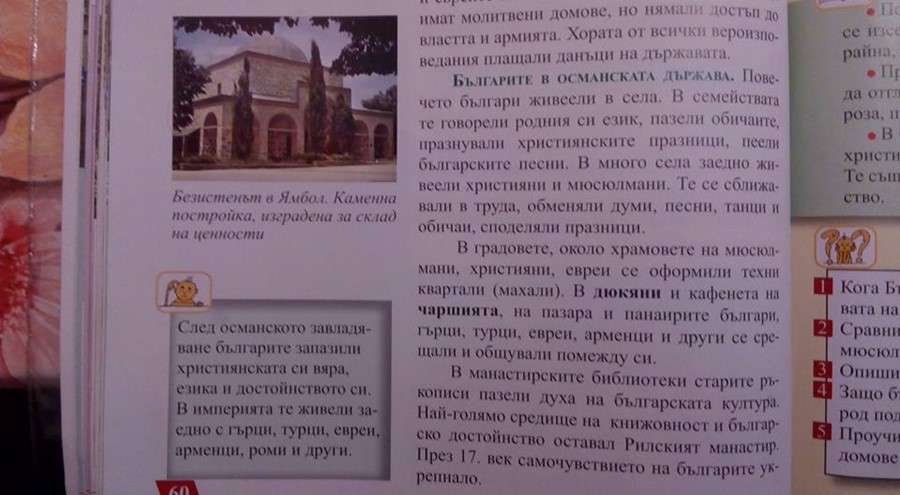 В учебник за трети клас по "Човекът и общество" османското владичество е представено доста приятно за българите.